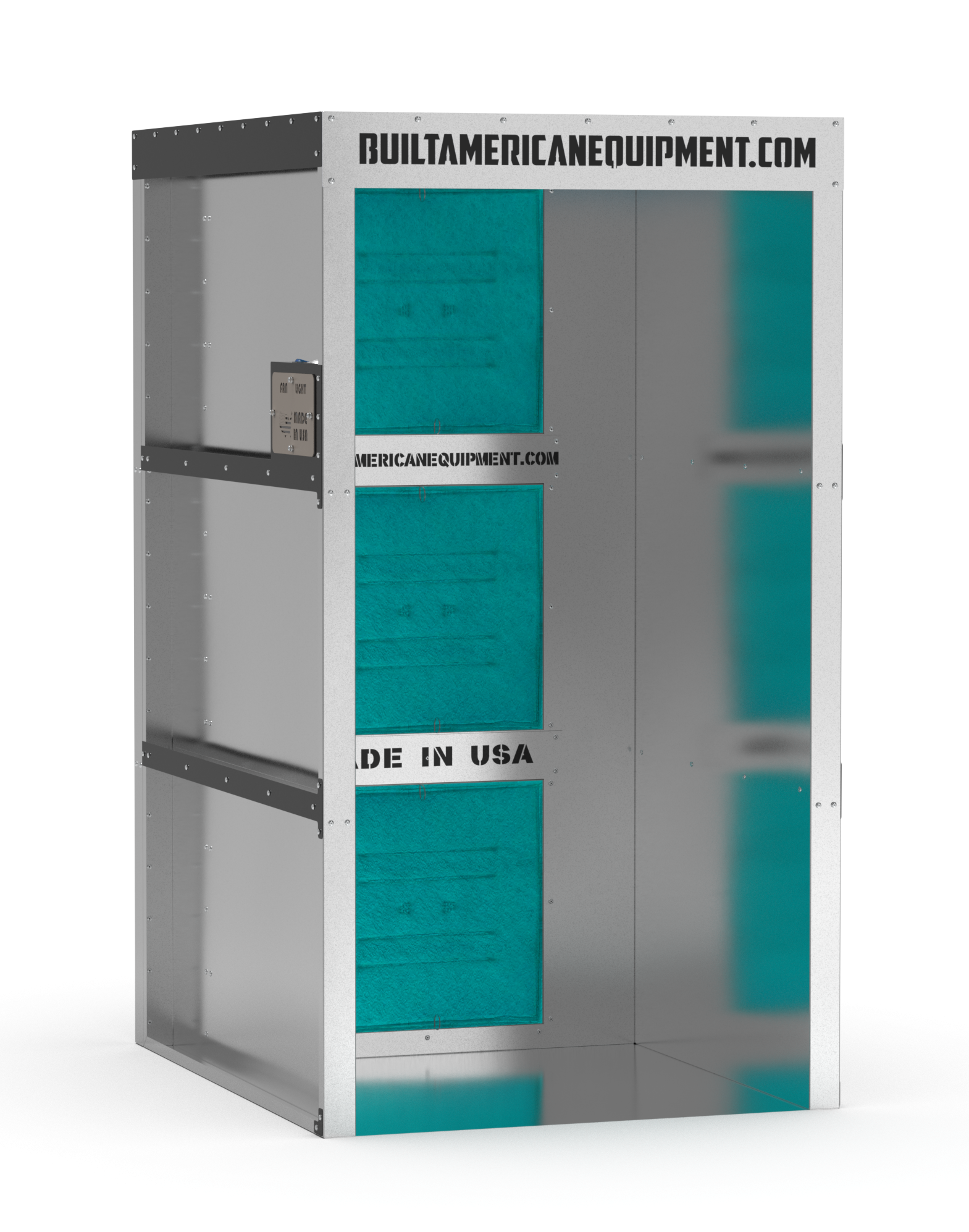 Built American Equipment’s industrial batch spray booths are available in many standard sizes (custom sizes available on request) and are the ideal choice for wet & powder applications. Industrial batch spray booths feature.