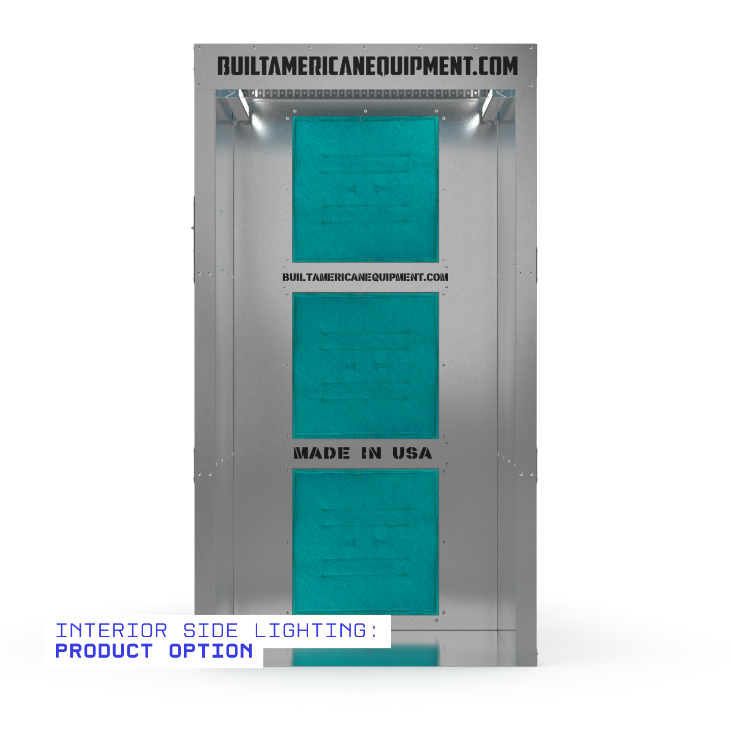 • Interior Side Lighting (Spray booths come standard with one overhead light. This upgrade adds two additional interior lights: one on the left wall and one on the right wall, improving visibility and illumination within the booth.)